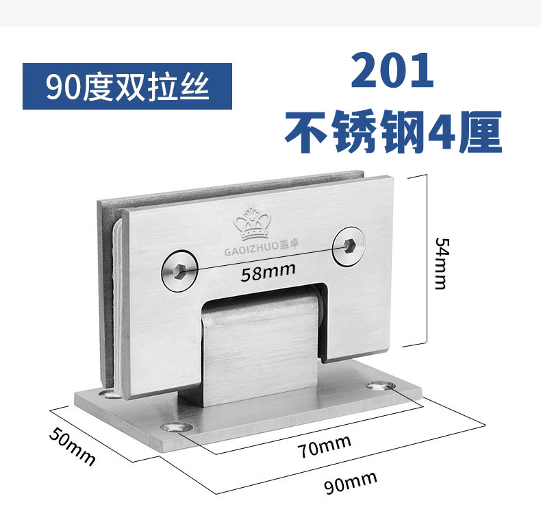 淋浴房卫生间玻璃门夹合页铰链90度单(3孔)
