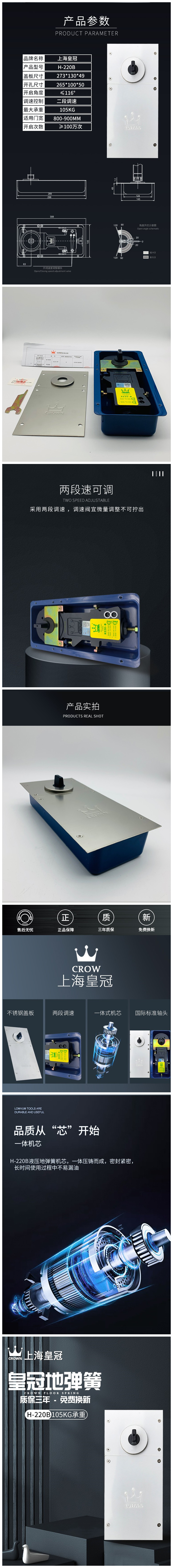 上海皇冠H220B玻璃门地弹簧